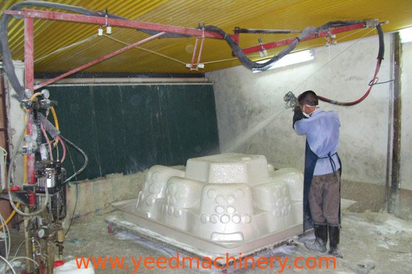spray gun, resin spread machine, resin spreading machine, resin spreading, resin spraying, gelcoat spraying machine, gelcoat spraying equipment, resin spraying equipment, resin